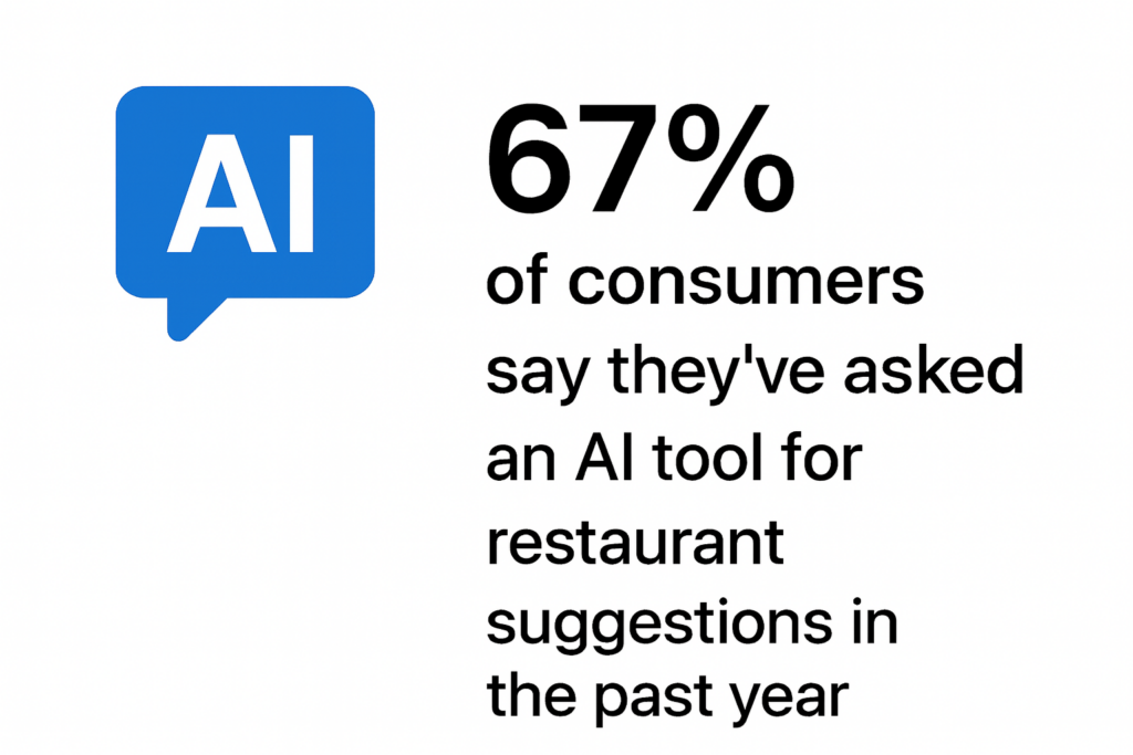 1. 67% of consumers say they’ve asked an AI tool for restaurant suggestions in the past year
