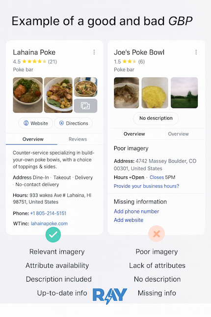 • Tools like the RAY Grader help you audit how AI assistants currently describe your restaurant and identify missing information to fix.