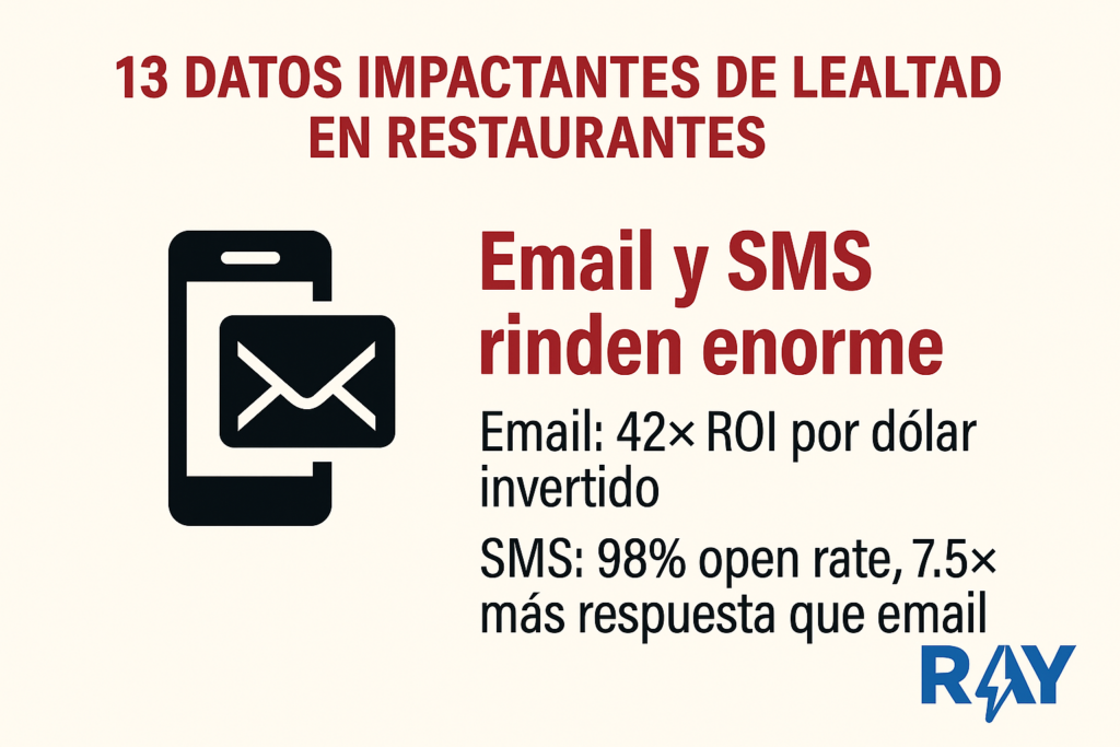 - SMS: 98% open rate, 7.5× más respuesta que email